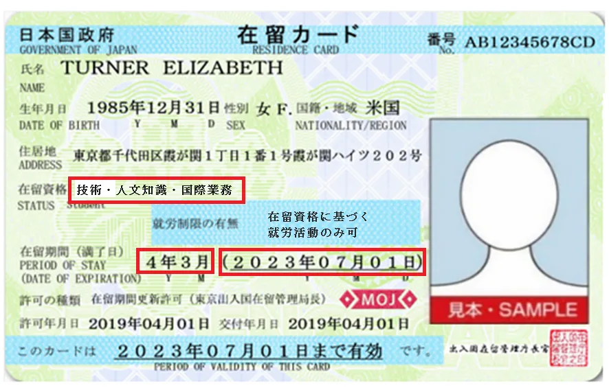 在留カードの在留資格・在留期間・在留期間の満了日を転記します。