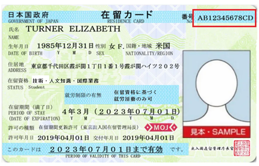 日本人の場合には在留カードはありませんので、在留カード番号欄は「なし」とします。