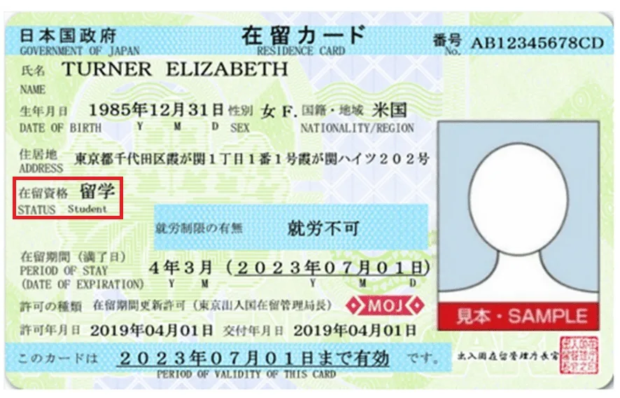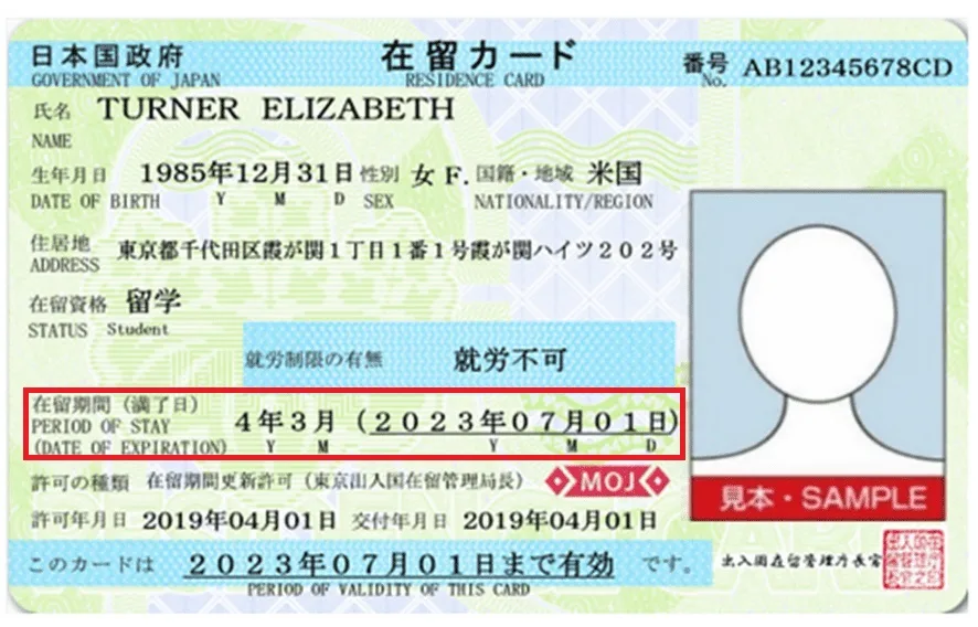 外国人が日本に在留することができる期間とその満了日が記載されています。外国人を雇用する際には在留期間を超えて滞在していないか確認することを要します。